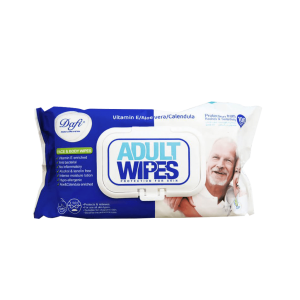 دستمال مرطوب دست، صورت و بدن بزرگسالان دافی حاوی ویتامین E و عصاره کالاندولا و آلوئه ورا آنتی باکتریال است.