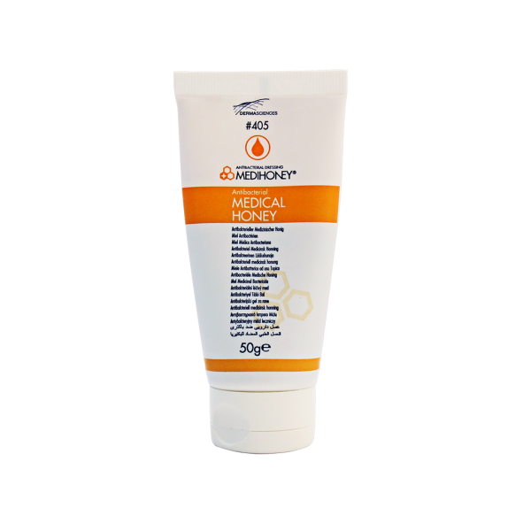 می کند. از ویژگی های متمایز کننده این محصول وجود حجم بالایی از عسل مانیوکا می باشد. کمپانی Dermasciences نوع بهینه شده ای از عسل را به جامعه پزشکی ارائه کرده است. مدی هانی، که دارای اثرات آنتی باکتریال قوی بوده و از کلیه مضرات موجود در عسل معمولی عاری می باشد. عسل ضد باکتری مدی هانی یک داروی موضعی است که ۱۰۰درصد حجم آن از عمل ضد باکتری مدی هانی تشکیل شده است و برای معالجه زخم های مزمن و حاد استفاده می شود. عسل دارویی ضد باکتری مدی هانی یک پماد طبیعی بدون چسبندگی است و بنابراین درد هنگام تعویض پانسمان را کاهش می دهد. از این پماد می توان برای زخم های سینوسی، عمیق، عفونی، عفونت پوستی، قانقاریا، عفونی بد بو، زخم های جراحی، زخم های سطحی مانند بریدگی، خراش، سائیدگی و زخم های سوختگی سطحی استفاده کرد.