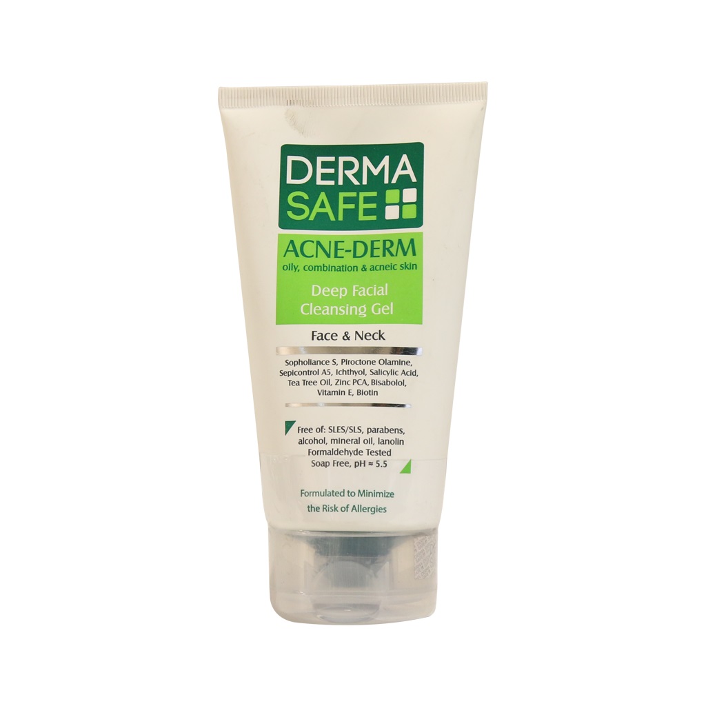 ژل شستشوی صورت درماسیف شوینده ای مناسب پوست های چرب، مختلط و دارای آکنه، می باشد که فاقد مواد صابونی بوده و pH آن سازگار با پوست است. همچنین حاوی مواد ضد باکتری و ضد قارچ جهت پاک نمودن پوست از آلودگی های سطحی و باقیمانده مواد آرایشی می باشد. این محصول به درمان جوش و آکنه کمک کرده و مات کننده پوست نیز است.