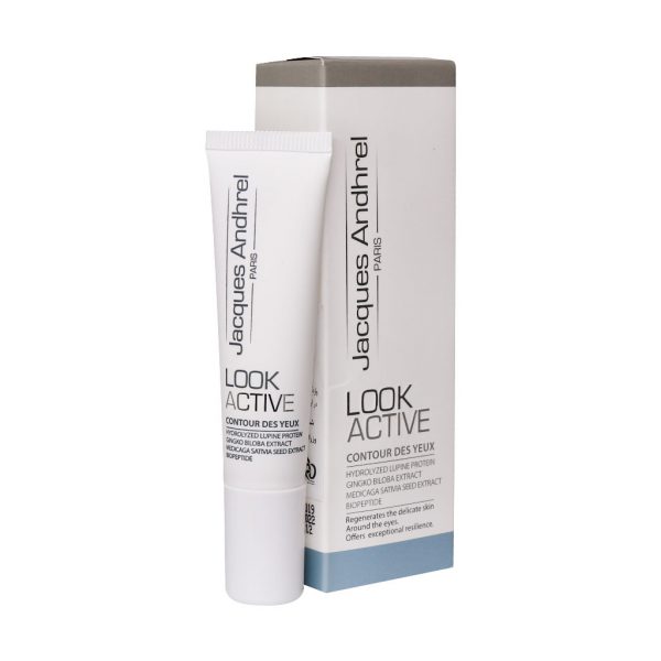 پوست حساس و نازک دور چشم به مراقبت ویژه و مخصوص نیاز دارد که در نتیجه افزایش سن و خستگی و کمبود آب پوست ناحیه اطراف دور چشم، باعث بروز حلقه های تیره و پف اطراف چشم می شود نوآوری در فرمول کرم دور چشم لوک اکتیو ژاک آندرل پاریس، شامل جینگو بیلوبا (Ginkgobiloba Extract) جهت تسهیل خونرسانی اطراف چشم ها، کافئین (Caffeine) به دلیل ویژگی های ضد التهابی و خواص آنتی اکسیدانی در کاهش تیرگی دور چشم، کلاژن جهت پیشگیری از پیری و افزایش خاصیت ارتجاعی پوست و کمک به کاهش چروک ها است. همچنین ترکیبی از پروتئین هیدرولیزشده لوپین (Lupine) و ویتامین E اجازه بازسازی قابل ملاحظه ای در ناحیه اطراف چشم ها را می دهد.
